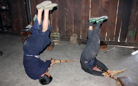 Chùm ảnh: Xem kiểu vừa “trồng chuối”vừa thổi khèn