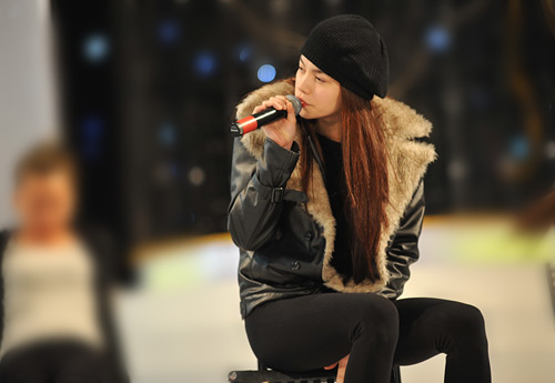 Hà Hồ mặc áo cổ lông tập hát ở Hà Nội