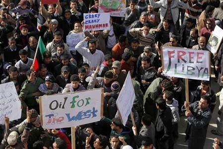 Ở Lybia cũng thế. Tên độc tài hung dữ, xảo quyệt, đồng bóng, hoang dâm – từng cho bộ hạ đặt bom ở Cộng ḥa liên bang Đức, đặt bom trên máy bay Boeing 707 của Hoa Kỳ, định hiếp dâm nữ phóng viên đài TF2 Pháp khi cô này đang phỏng vấn hắn hồi năm 2006 – nay đang trong thế tuyệt vọng, bị Liên Hiệp Quốc khai trừ, bị truy tố trước Ṭa án H́nh sự Quốc tế về tội diệt chủng, nhiều bộ trưởng, viên chức cấp cao, đại sứ … ly khai hàng loạt. Hiện Gadhafi cũng đang phát hoảng, run sợ, chỉ c̣n ra lệnh được cho lữ đoàn quân bảo vệ đặc biệt ăn lương cao, bọn này đang ră ngũ, bỏ súng dần trước cao trào nổi dậy tự quản của nhân dân.
