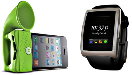 Với công dụng như một bộ loa mini, tuy nhiên iPhone Horn Stand Speaker ghi điểm nhờ thiết kế rất độc đáo và không tiêu tốn điện năng của máy. Thiết kế giống như loa phóng thanh giúp thiết bị này cộng hưởng âm thanh phát ra từ iPhone và cho âm lượng lớn hơn rất nhiều. Bộ loa này có giá 25 USD.