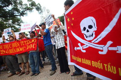 Người dân ở Hà Nội biểu tình chống Trung Quốc suốt bốn Chủ Nhật của tháng 6 và Chủ Nhật đầu tháng 7, 2011 ở Hà Nội. (Hình: AP/Na Son Nguyen)