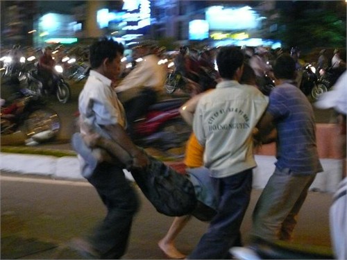 Biển quảng cáo rơi trúng đầu người dân đang nhậu