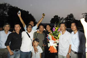 Những người bạn biểu tình và gia đình đến đón chị Hằng chiều 25/8/2011 với hoa, nụ cười và nước mắt./Photo courtesy of anhbasam