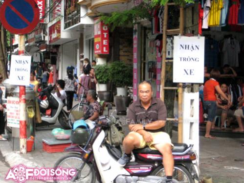 Những tấm biển nhỏ được dựng lên với 3 chữ ngắn gọn: trông giữ xe khiến những vị khách tới hiệu vàng mừng như... bắt được vàng. Tuy diện tích ít nhưng do số lượt người gửi xe nhiều và diễn ra cả ngày nên các điểm trông giữ xe này cũng kiếm tiền bộn.