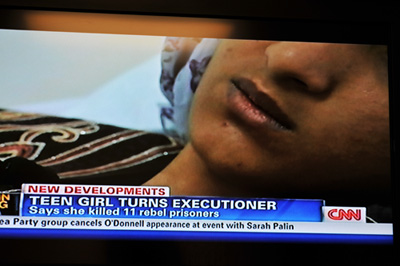 Nisreen, một cô gái 19 tuổi, sát thủ của Gadhafi, từng bắn chết 11, trong một bệnh viện ở Tripoli. (Hình chụp qua màn ảnh truyền hình CNN)