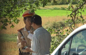 Sau khi cất tiền xong, hai cảnh sát này tiếp tục chặn xe, đồng hồ lúc này đă gần 7 giờ sáng. Thấy xe chúng tôi đậu trên lề đường quá lâu, một CSGT bước nhanh đến quát: “Đi nhanh mày”. Tài xế than: “Xe em hư chút, em sửa sắp xong rồi”. Có vẻ nghi ngờ, người cảnh sát này ḍm vô xe ô tô rồi bỏ đi”.