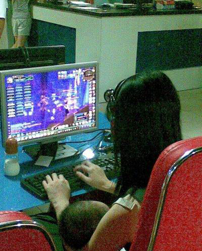 Choáng với bà mẹ vừa cho con bú vừa... chơi game