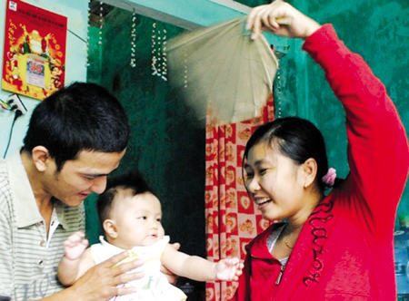 Hạnh phúc bình dị của gia đình anh Quý và chị Vân.Ảnh: Lê Văn Ánh