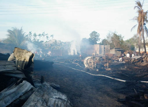 Xưởng gỗ bốc cháy dữ dội lúc nửa đêm