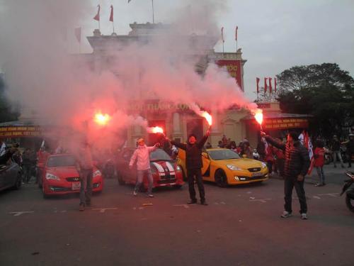 Xem cổ động viên Hải Phòng diễu hành bằng xế khủng