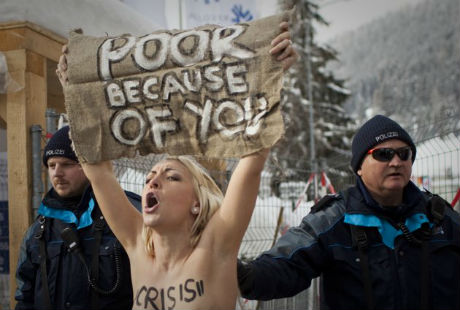 Ngực trần phản đối Diễn đàn Kinh tế Thế giới