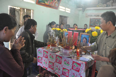 | Người dân đến viếng cha con ông Nguyễn Đi và Nguyễn Thị Sa Ly. |