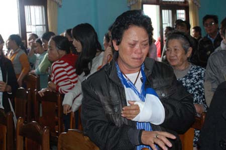 Bà Nguyễn Thị Ba khóc nức nở khi người làm thuê của mình bước vào vòng tù tội - Ảnh: Hữu Khá