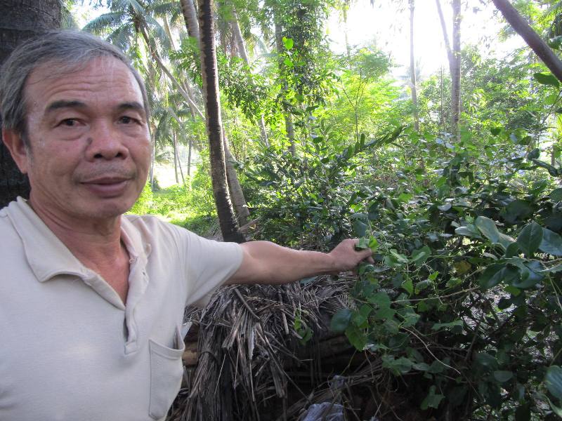 | Ông Bảy đang giới thiệu cây thuốc |