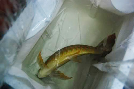 Một chú cá rồng đã được gây mê bằng hóa chất MS222. Ảnh: Arowana.