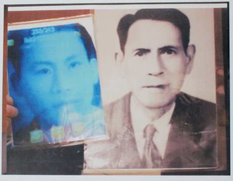 Ảnh chụp vong người con (bên trái) so với ảnh thờ của bố (bên phải)