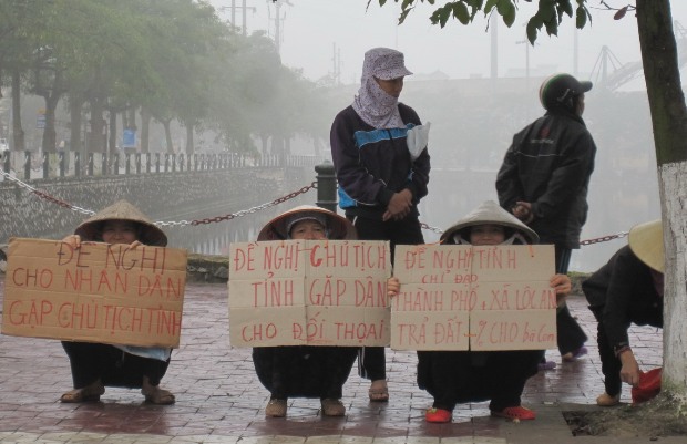 Nông dân Nam định biểu t́nh trước cổng Ủy ban Nhân dân tỉnh