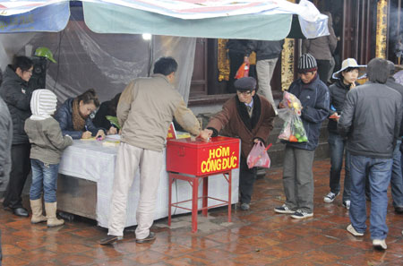 Du khách thập phương làm công đức tại đền Cửa Ông, Quảng Ninh.