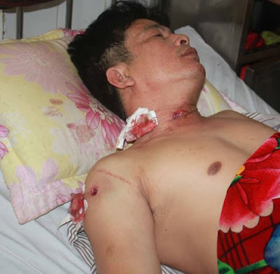 Nh́n vào cổ người đàn ông, vết thương trong ảnh đó, tôi lại liên tưởng đến thi thể của bố tôi sau khi mổ tử thi, cổ của bố tôi cũng có những vết khâu như vậy. Người đàn ông đó tên Nguyễn Hữu Năm, lại là một nạn nhân mới dưới bàn tay của những người thi hành luật pháp - Công an. Không biết liệu rồi ông ấy có qua khỏi cơn nguy kịch sau khi chịu 6 phát súng của viên Trưởng công an xă không? Tôi thực sự mong sao ông ấy sẽ qua khỏi, dù hy vọng đó rất nhỏ nhoi.