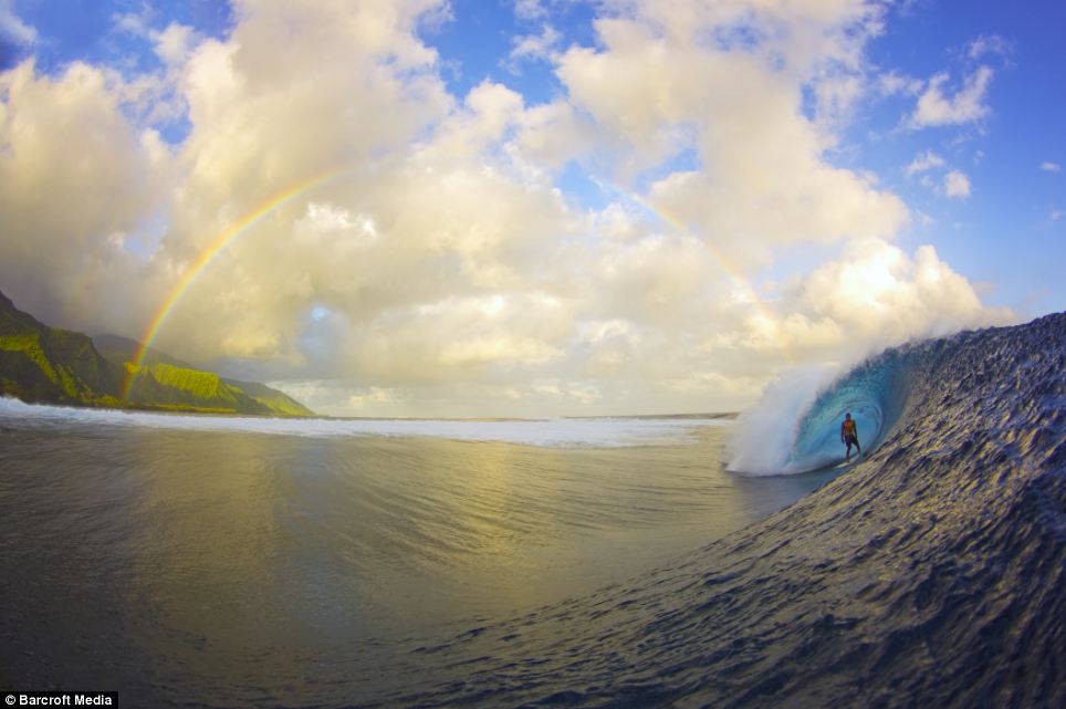 Cầu vồng tuyệt đẹp xuất hiện cùng sóng lớn