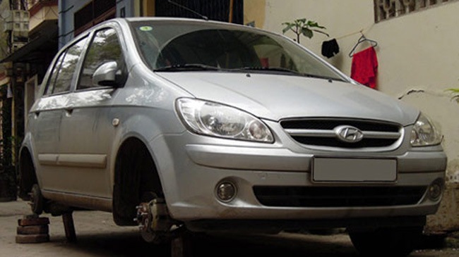 Hyundai CLick bị trộm "cuỗm" 3 bánh xe