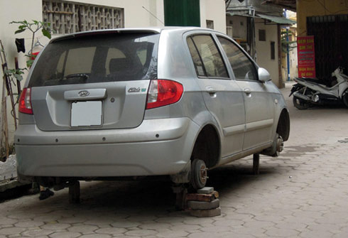 Ôtô bị tháo trộm 3 bánh lúc rạng sáng
