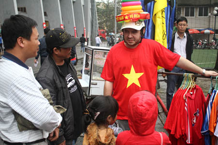 Chàng 'xe ôm Tây phục vụ' lại bán... áo và khoai lang