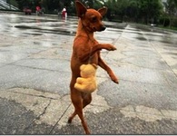Chú chó vừa xách túi vừa đi bộ