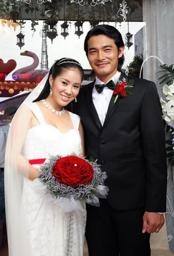 Lê Phương đă mang bụng bầu ba tháng khi tổ chức lễ cưới với diễn viên Quách Ngọc Ngoan.