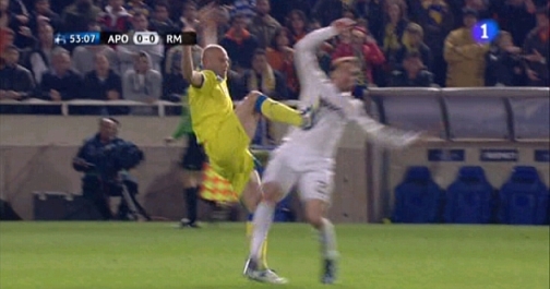 Kinh hãi cú tung cước vào cầu thủ Real của “De Jong” APOEL