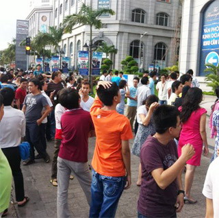 Không ít người thấy hoảng hốt v́ lần đầu biết đến cảm giác động đất - Ảnh: Phương Anh