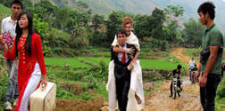 ‘Siêu đám cưới’... chú rể cõng cô dâu, 'cuốc bộ' 3km