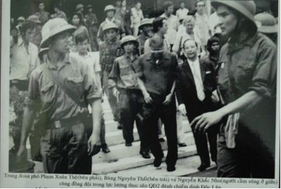 Tấm hình lịch sử ghi lại hình ảnh các chiến sỹ Quân giải phóng trong lực lượng thọc sâu Quân đoàn 2, đánh chiếm Dinh Độc lập, bắt và dẫn giải Tổng thống VNCH Dương Văn Minh và Thủ tướng Vũ Văn Mẫu ra Đài phát thanh Sài Gòn tuyên bố đầu hàng ngày 30/4/1975, đã ghi lại dấu mốc quan trọng trong cuộc Tổng tiến công và nổi dậy mùa Xuân 1975, thống nhất Tổ quốc.