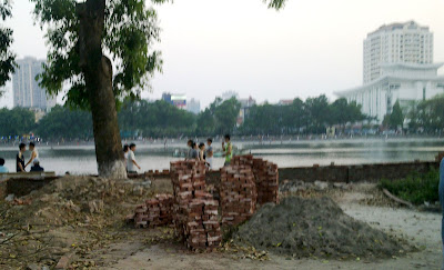 Tiếp theo, mảnh đất phía Đông của hồ bị quây lại chia cho Nhà hát Ca Múa Nhạc