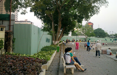 Khi chúng tôi đi ngang qua đây, người dân chủ yếu là các bác lớn tuổi về hưu đang bức xúc lớn tiếng bất bình trước câu chuyện Tiên Lãng, Văn Giang và bây giờ là chính nơi mảnh đất mình đang sống. Nếu bức tường này hoàn thành thì toàn bộ khu hồ Thành Công sẽ trở thành một cái ao tù, với bốn bề là hàng rào và các ngôi nhà cao ốc. Công sức, thành quả lao động của hàng ngàn người dân bị cướp đoạt ngang nhiên như thế này sao?