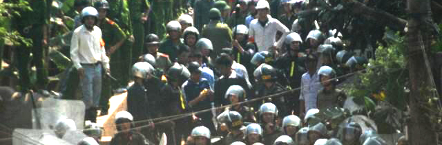 Để chứng tỏ quyền lực của chính quyền trong việc “hỗ trợ” một dự án kinh doanh tư nhân được Nhà nước bảo trợ thông qua những điều luật và điều khoản dưới luật đă và đang ngày càng bị công luận đồng thanh phản bác v́ bản chất vi hiến, đi ngược lại quyền lợi của đại đa số nông dân, thành phần chủ yếu của nhân dân Việt Nam, thành phần từng là chủ lực quân của cuộc cách mạng và chiến tranh do Đảng Lao Động, Đảng Cộng Sản Việt Nam phát động và lănh đạo trong nửa thế kỷ qua, chính quyền đă huy động hàng ngàn công an, cảnh sát vũ trang hùng hậu đàn áp cuộc chống đối giải tỏa của hàng trăm nông dân quyết bảo vệ mảnh đất thấm mồ hôi, nước mắt và máu, c̣n lưu giữ xương cốt của cha ông từ nhiều đời.
