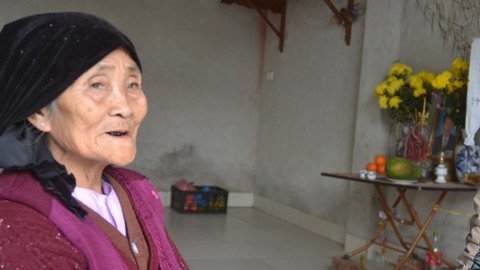 | Bà Đặng Thị Cạnh, 77 tuổi thở dài đau xót khi nh́n vào di ảnh đứa con trai trên bàn thờ vẫn c̣n nghi ngút nhang khói. |