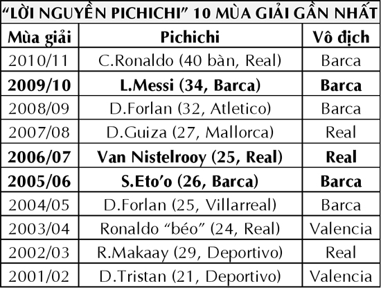 Messi giành Vua phá lưới, hay lời nguyền Pichichi?