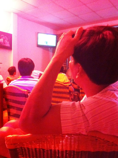 Gần 12g đêm, Thành thất thểu đi ngang qua chỗ tôi ngồi nói giọng buồn rầu: “Chán quá, thua c̣n có 2 chai”. Sau đêm đó th́ tôi không thấy Thành đến quán chơi bóng nữa. Mấy người quen biết nói Thành hết tiền rồi. Bẵng đi một vài tuần tôi mới thấy Thành xuất hiện lại ở quán, ngồi xem bóng đá ở một góc khuất khó nhận ra. Hết hiệp 1, chúng tôi xuống dưới xem kèo hiệp 2 th́ phía quán trên có tiếng la đánh nhau. Cả đám bu lại xem th́ thấy Thành đang bị ba thanh niên khác kẹp lại đánh hội đồng. Không ai dám vào can.