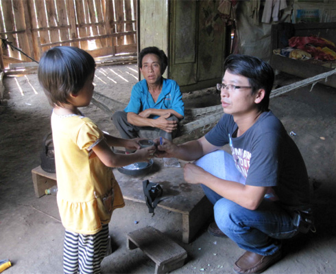"Nó ngoan lắm, lúc cha nó không lao động được, người làng đến nhà làm giúp mấy trăm cây cà phê trong vườn. Con bé cứ loay hoay mang khoai môn ra ngoài giếng rửa, rửa bằng tay không đặng, nó dùng 2 chân để đạp cho sạch, rồi tự nhóm lửa, khoai chín mang ra mời chúng tôi dùng", người hàng xóm nghẹn giọng nói tiếp.