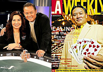 Men Nguyen và vợ lúc còn mặn nồng tại một sòng bạc Las Vegas (trái). Men Nguyen được tuần báo Los Angeles vinh danh ra trang bìa.