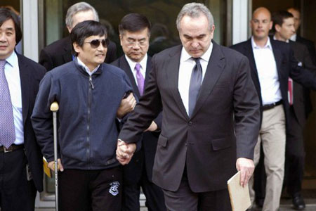Ngoại trưởng Hillary Clinton ra thông cáo: “Tôi rất hài ḷng là chúng tôi đă dàn xếp cho ông Trần được tạm trú trong sứ quán, và sau đó, rời khỏi sứ quán theo đúng cách thức phù hợp “với sự lựa chọn của ông”, cũng như những tiêu chí của chúng tôi. Ông Trần được chính phủ TQ thông cảm về tương lai của ông, trong đó, có việc tiếp tục con đường học vấn ở một môi trường an toàn”.