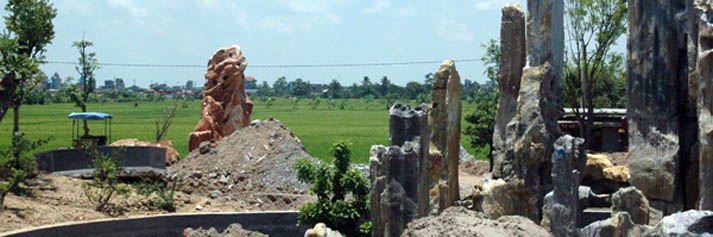 Ḥn non bộ ghép bằng đá xanh vụng về c̣n nguyên mối ghép xi măng