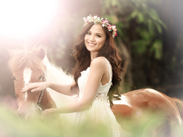 Diễm Hương cưỡi ngựa dạo vườn hoa