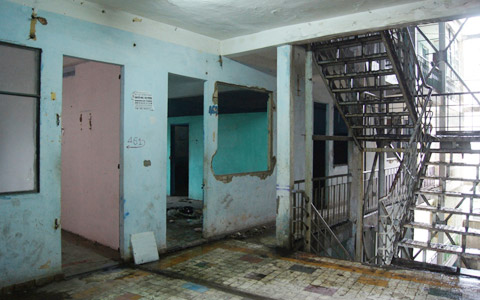 Phòng ốc, cầu thang xuống cấp, sập sệ, bỏ hoang.