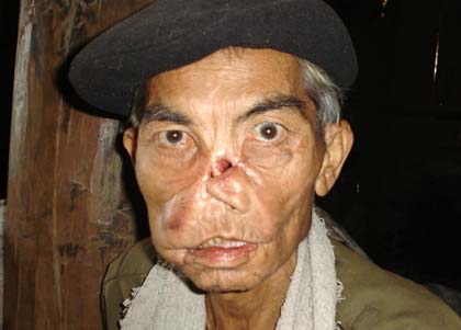 | Ông Que và khuôn mặt tật nguyền vì bị gấu tấn công. |