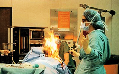 Vào ngày 19/4, bác sĩ Jay Yelon làm việc tại bệnh viện Lincoln, New York, Mỹ đă thực hiện ca phẫu thuật mở khí quản cắt ống thở cho bệnh nhân Enrique Ruiz. Do con dao mổ điện để quá gần nguồn cung oxy nên nó đă gây ra vụ nổ đáng tiếc.