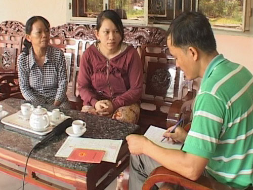 Bà ngoại và mẹ cháu Thiện đang trình bày vụ việc với điều tra viên - Ảnh: Xuân Bình