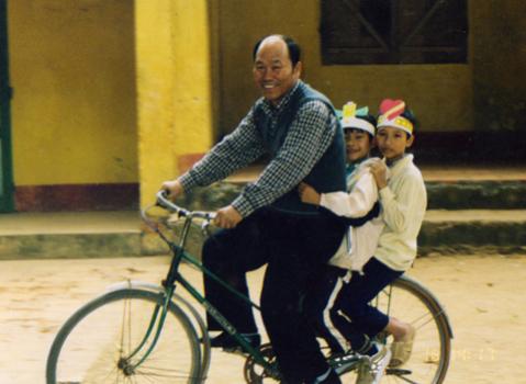 | Bác Lee đem gà rán đến chiêu đãi các em tại Trung tâm Hy Vọng, Lập Thạch, Vĩnh Phúc nhân dịp Trung Thu, cuối những năm 1990. Ảnh: Nhân vật cung cấp |