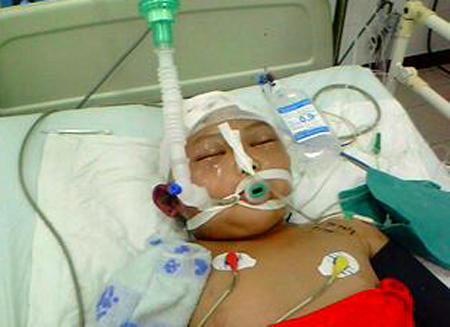 Bé trai 7 tuổi bị người lớn đánh vỡ sọ não